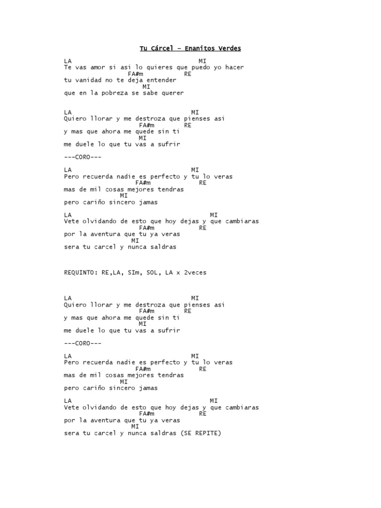Related Terms : Enanitos Verdes Tu Carcel Letra